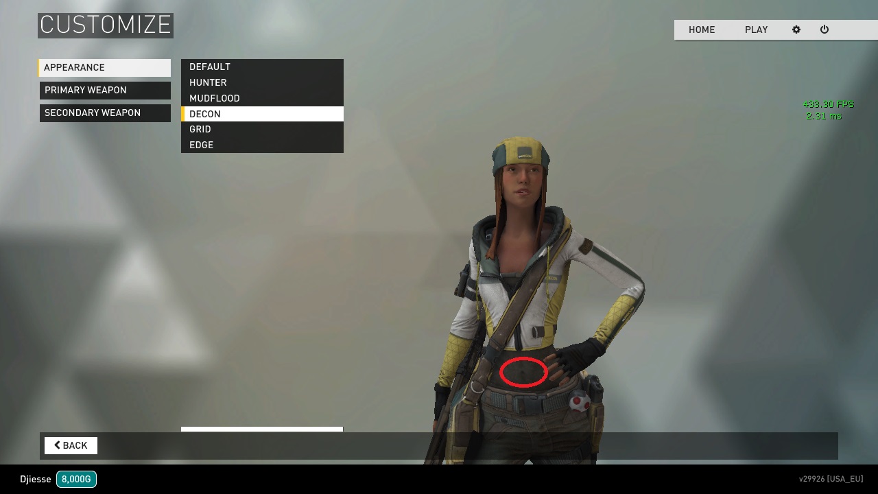 On the Decon skin, her navel is actually still visible, as if her original skin texture had just been recolored