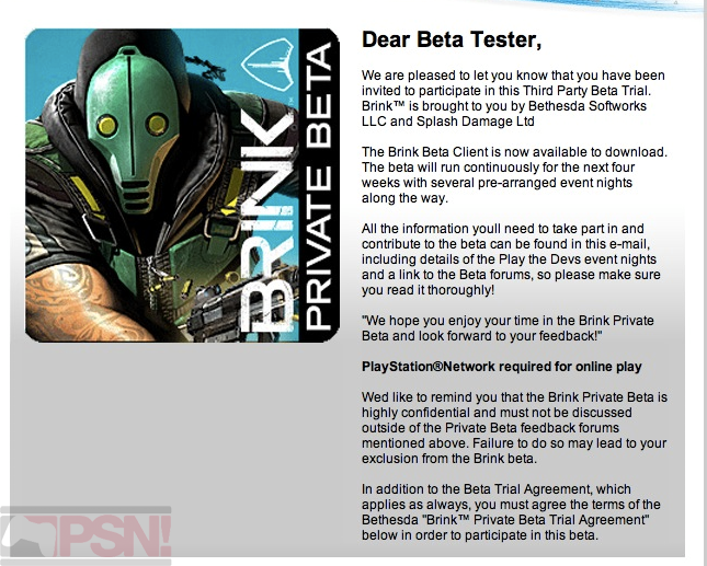 Usually to get into beta’s on PS3 you have to be a plus member and then just check your email and see if you get lucky. Thats how I got in KZ3 beta. No such luck for brink tho. Lets hope some of the ppl who get in upload some vids for us all!