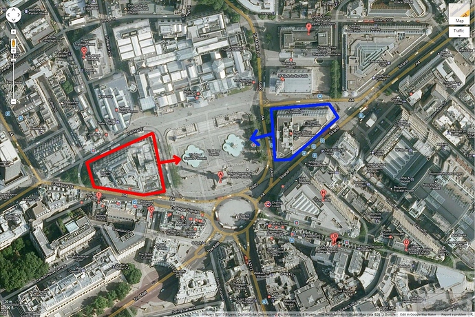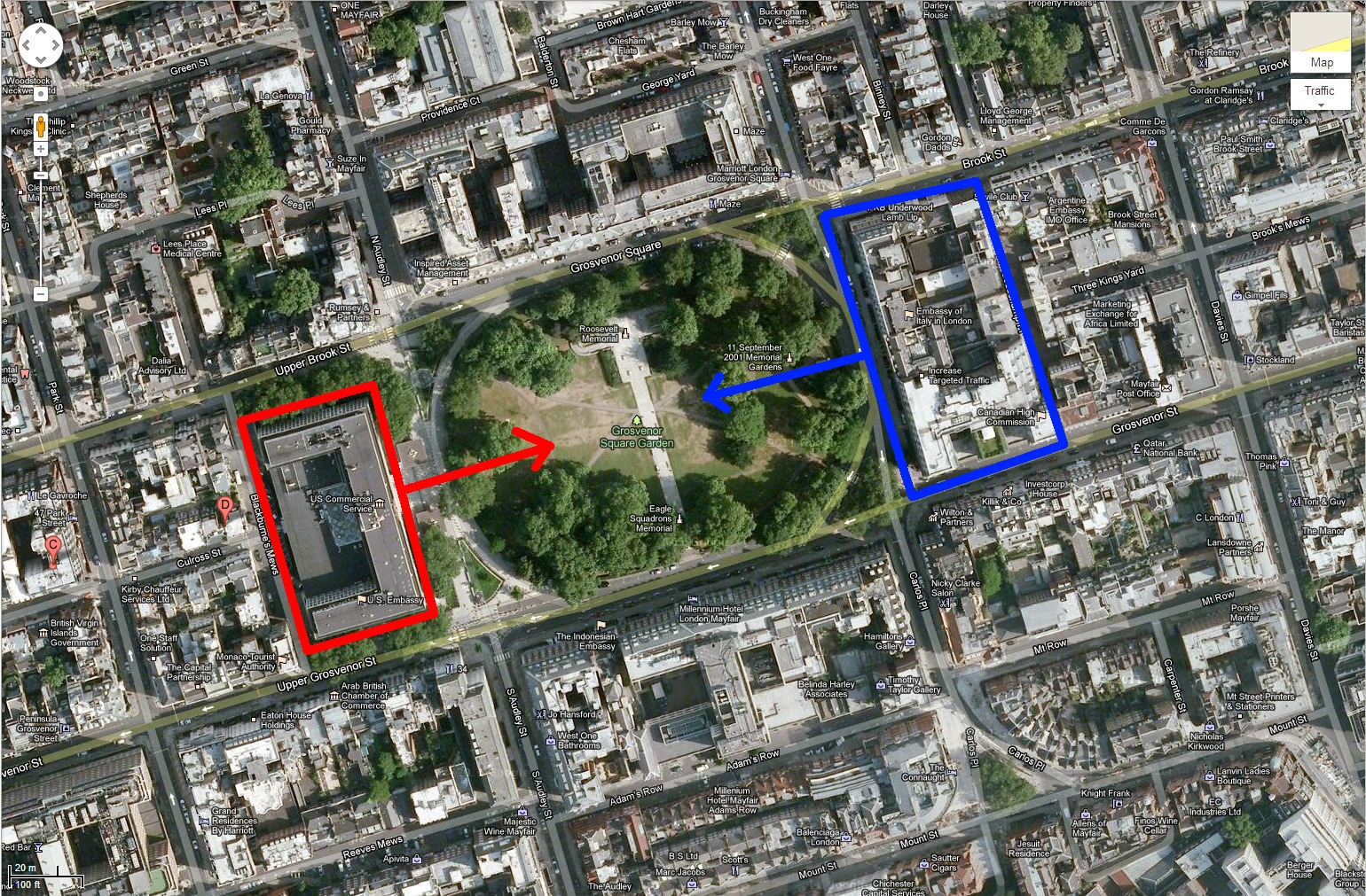 I’m thinking more of two camps build within trafalgar square. Right next to each fountain, or perhaps stationed on top of each fountain build on swift scaffolding like all the yellow constructions we constantly see in DB maps.