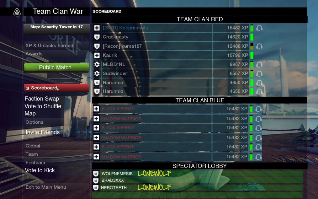 - [li]Selecting Lone Wolf will place you into a Clan War match as an individual where there is an open slot. Or into Spectator. This will search any match for an opening. [/li]