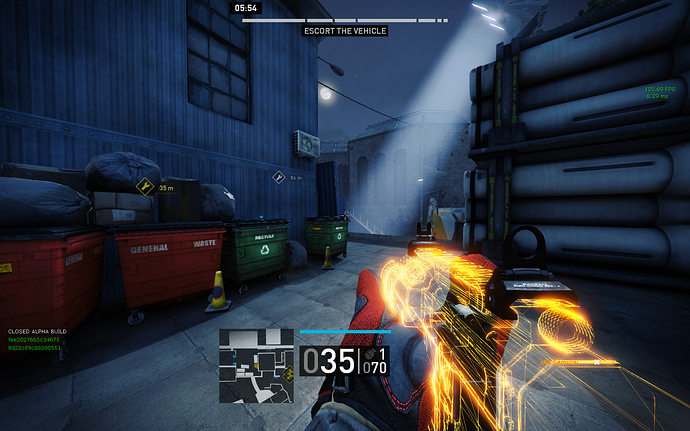 I had a little bug with the weapon model only showing the wireframe a few days ago. Unfortunately I can’t reproduce it, since I just spawned like this, died and then respawned with my normal weapon model. Here’s the screenshot: