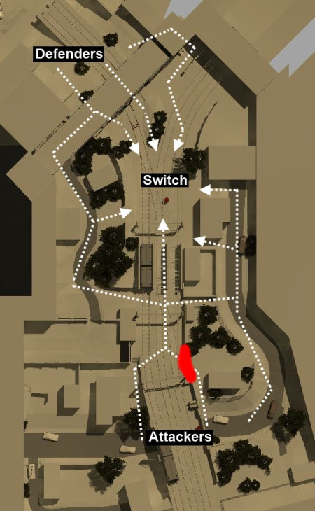 secondly maybe a subway tunnel under the tracks as a 3rd route to objective. yes there is already a tunnel but a narrow one with a kink as the large one is too open as it leads direct to defence spawn. if that moves back it could be different but then an extra narrow corridor route wouldnt hurt.