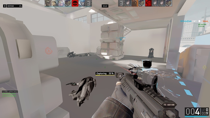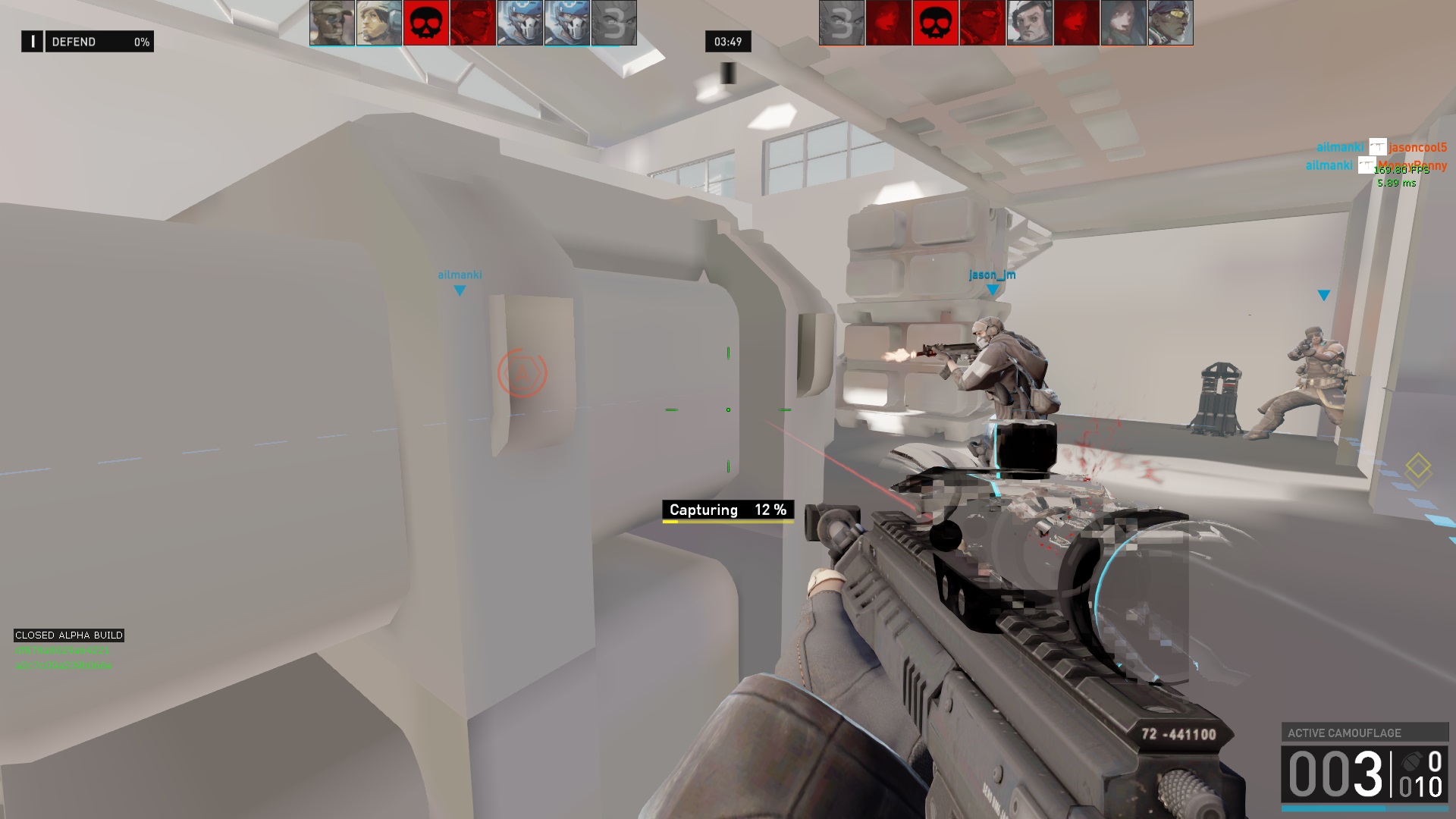 I’m not sure anymore, but I think I got revived and after that only my scope visor was invisible. It stayed invisible all the time, until I used my camouflage ability again.
