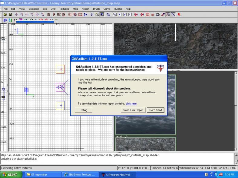 My problem now it this, I made a 512X512 map and it compiled fine, I changed one texture in it and it will not compile. So I change back to the texture I had in it and now it will not compile. This is what I get, it tell me nothing. See photo