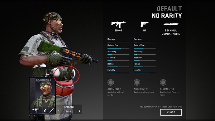 Skybonez’s SMG-9 magazine clips with the container on his belly:
