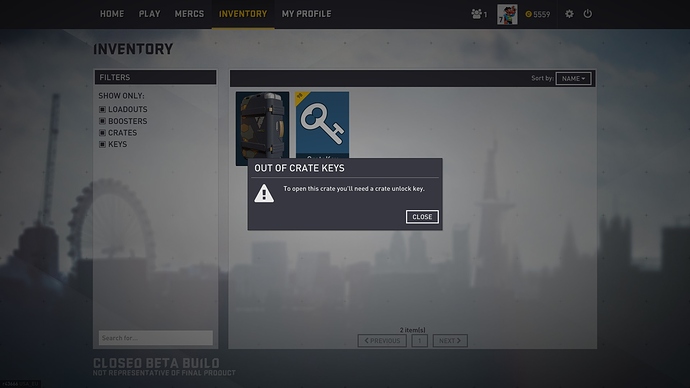 Edit: Once exit and come back to the inventory, crate has dissapear, CrateKeys=CrateKeys-1 and nothing else is in the inventory.