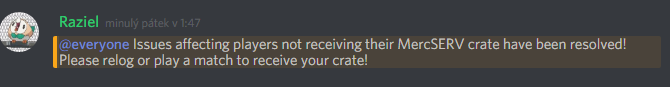 It is pretty interesting considering the past Events have also had problems with case drops and trinkets etc. but i NEVER was affected by any of them until this event and i did not receive my MercSERV Crate until after they ‘Fixed’ the issue.