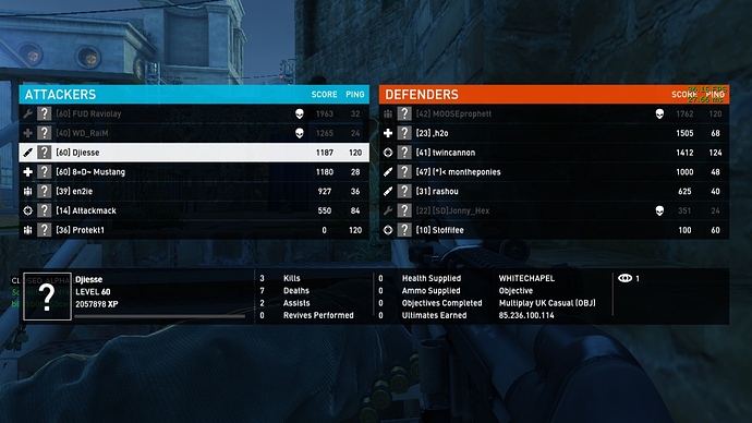 On several occasion today the line of icons at the top of the HUD seemed to drop players randomly. For instance on a team of 6, there would be only 4 icons (character portraits or skulls) for a few seconds, then everybody would be back. Didn’t notice any “XYZ left the game” or “ABC entered the game”, but I didn’t think either of cross-checking with the scoreboard to confirm if these were glitches or real fast drop out / join.