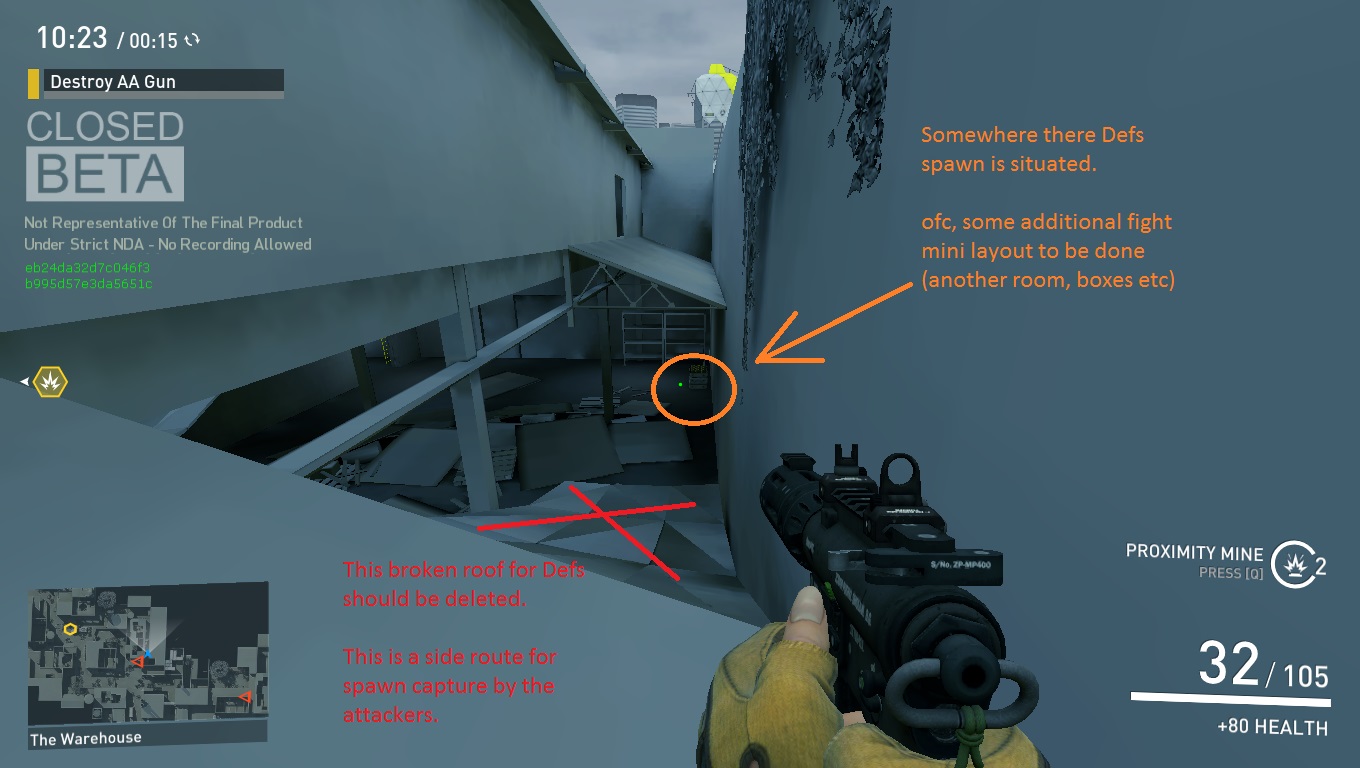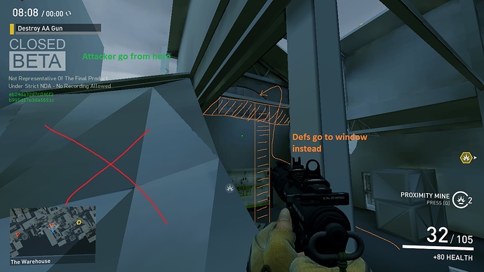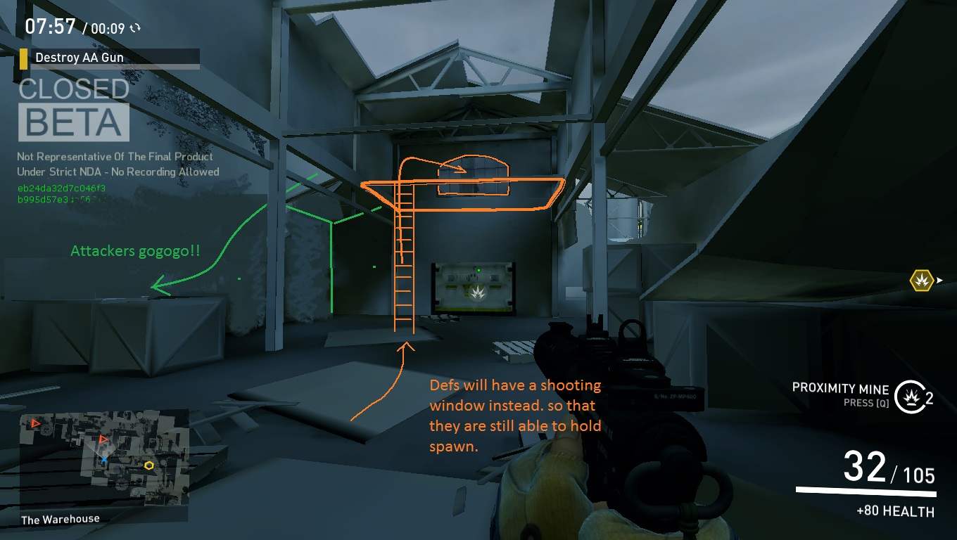 first of all in order to lessen spawnrape by defenders when ramp is not yet constructed, and electrocar-OBJ is also not made yet. We can have a window so that snipers can help to clear this building (this building with electrocar-BJ and route to the main OBJ)