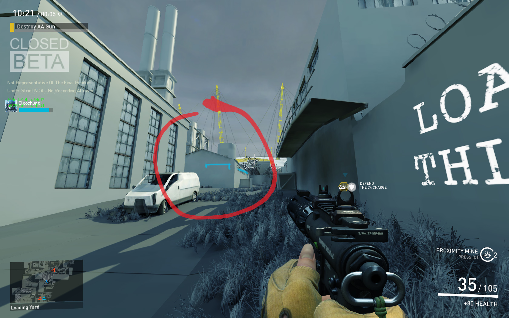 The roof above the left-hand gate objective is very OP for defense. Single ladder to access and easy to hide behind the eaves to heal up and defend the gate from being blown. I would make it flat and at least allow players on the ground to shoot back.