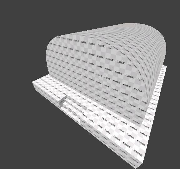 The second picture shows a brush prism with 16 sides (15 sides form the round shape, 1 long side at the bottom) which is placed on top of 2 ordinary brushes. In GtkRadiant you have T-vertices at the very same place as in picture 1. Fortunatly q3map2 - being a smart piece of software - takes care of this and automagically adds the needed vertices and does a quite nice triangulation/tesselation.