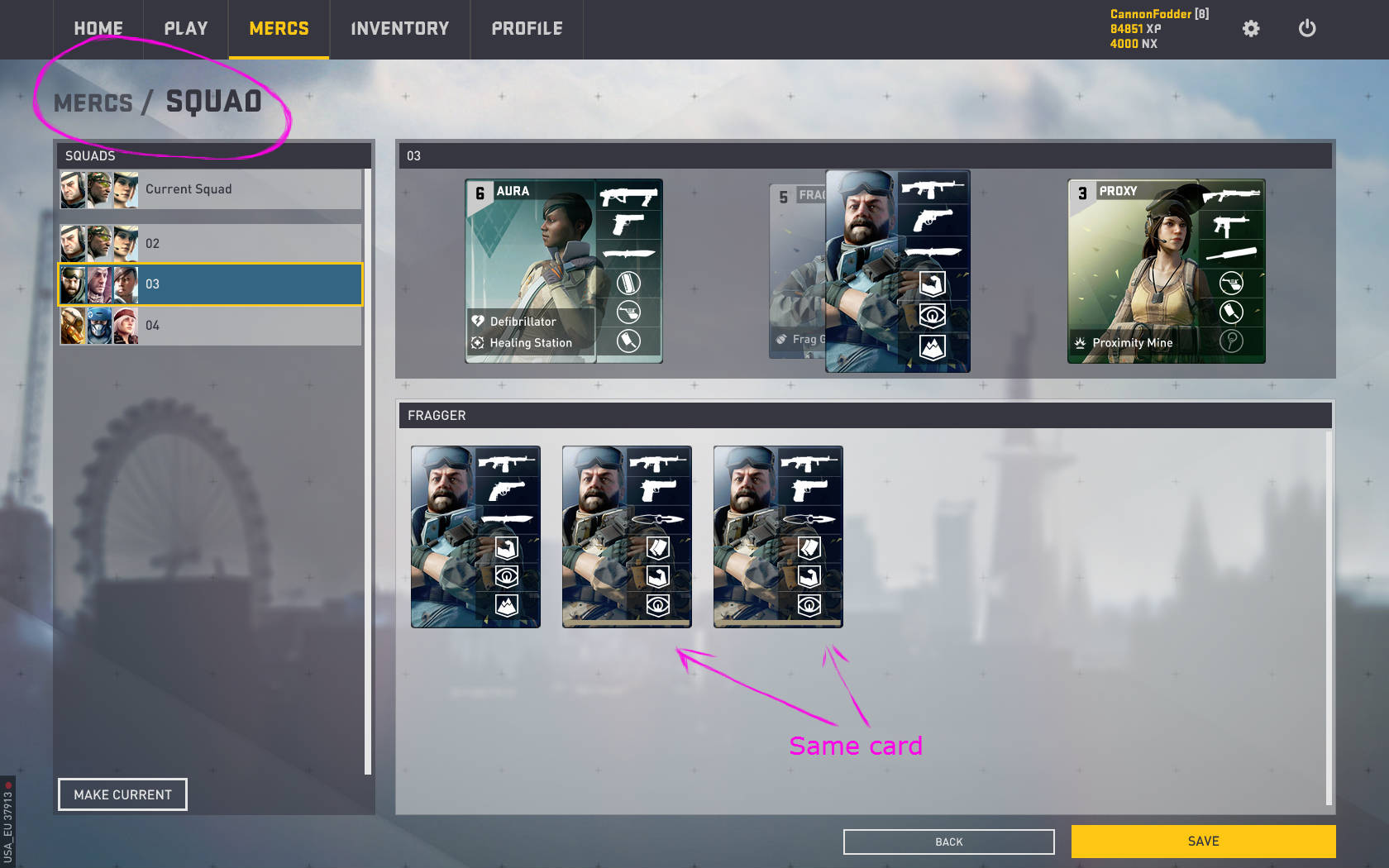 It’s good to know if we have duplicate cards …while in the Inventory screen. But while building a squad there is no need for the game to show duplicate cards.