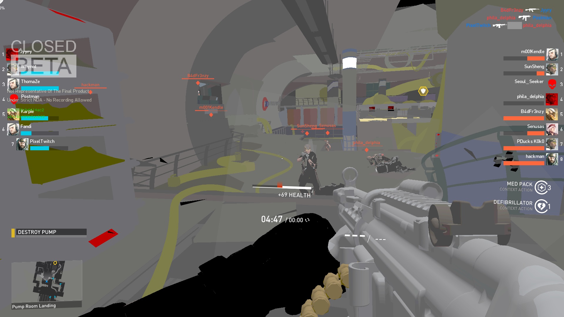 I want players shooting at players, not at the crutches that represent the players. It makes fights more layered, intense and intimate. And right now there’s more to it than just player models. The indicators and the noisy HUD in general also play a big role.