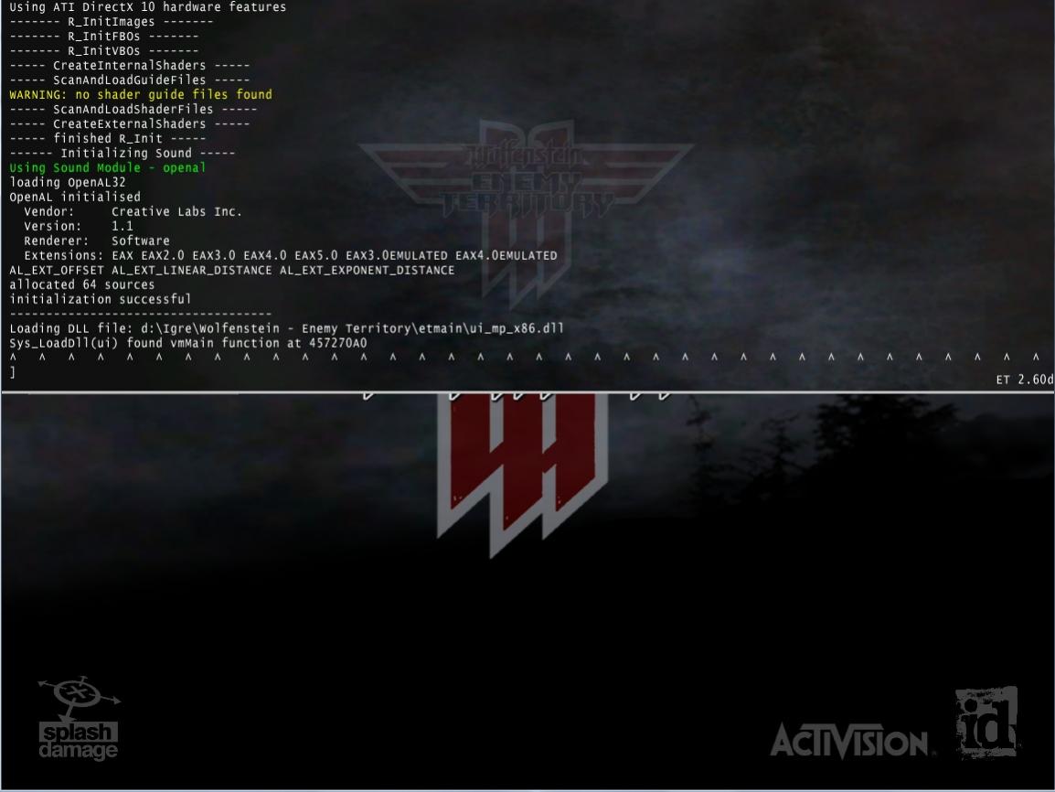 I have changed some static libraries in Enemy Territory to dynamic. Game now need for loading zlib1.dll, libpng12.dll and glew32.dll along with standard (renderergl.dll, and game specifics cgame_mp_x86, qagame_mp_x86 and ui_mp_x86).