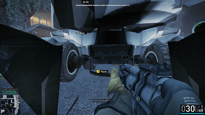 You can walk inside the unrepaired EV. Just crouch behind it and start walking in.