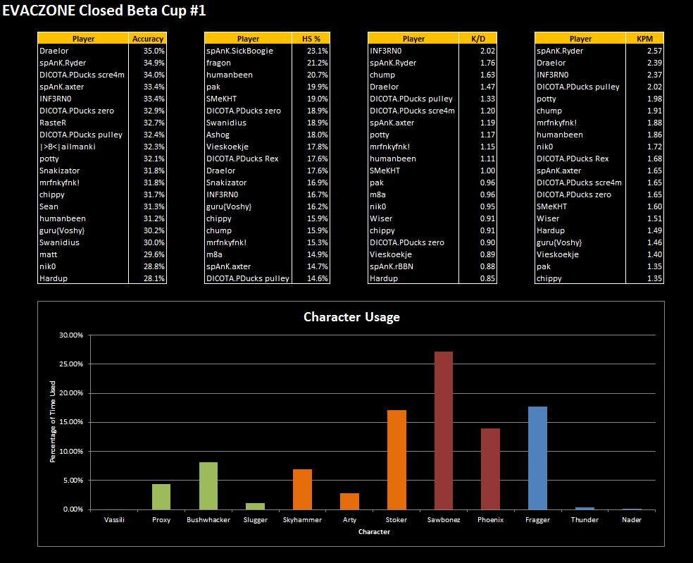 Posting these here as well as Nexon forums. top 20 stats for a number of categories.