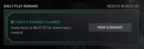 I played yesterday and got day 1’s reward (1500 credits) and I’ve been playing all day today but still haven’t received day 2’s reward (Mk. 1 case). Anyone know why this is? I’ve played a good 9 - 10 matches, all game modes but have yet to receive it. Thanks in advance. Can’t seem to attach screenshot