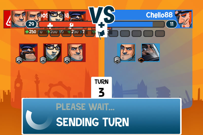 If, after ending your turn, you click on either the blue or red icon on the top of the screen to see soldiers’ health and stuff, when the loading/sending turn screen comes up that part of the screen remains visible.