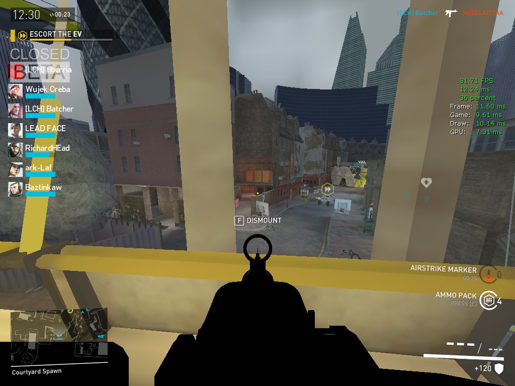 On empty servers and localhost I get my capped 120(uncapped reaches ~200) stable easily, but if I’m on a 5v5 or higher server my FPS goes mental as soon as there are players on my screen and in 7v7 servers my FPS goes mental just being in a server, not even seeing players or having any action happen near me.