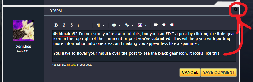 @chimaira92 I’m not sure you’re aware of this, but you can EDIT a post by clicking the little gear icon in the top right of the comment or post you’ve submitted. This will help you with putting more information into one area, and making you appear less like a spammer.