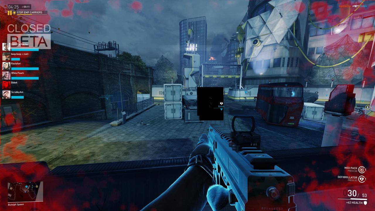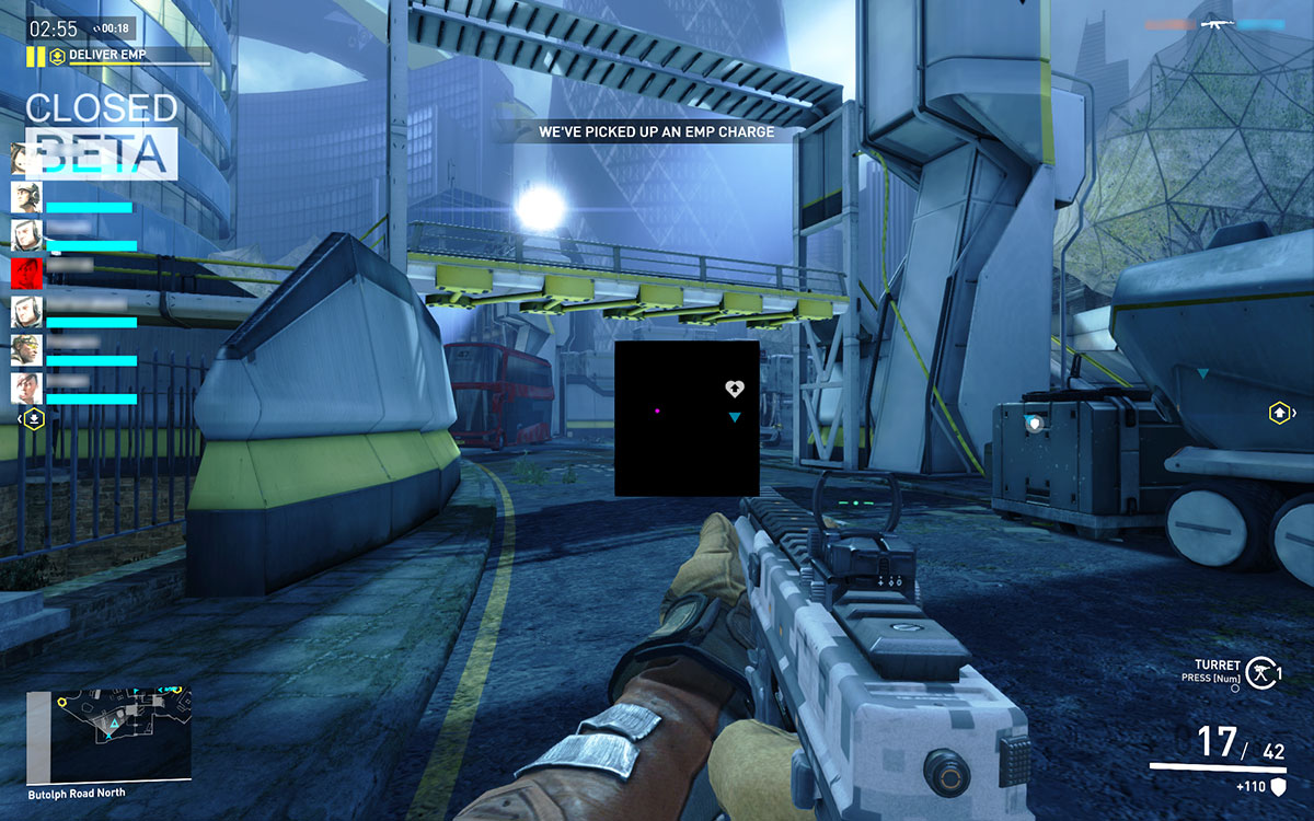 During tonight games I saw some black boxes taking over the bus stop at the end of chapel. They would move and resize as you fought around it. you were unable to see anything behind or in front of it as if it were a black hole sucking up the light. HUD stuff showed in front though. Im not sure if this was liek this form the start of the match or if it started slight after we got to the section.