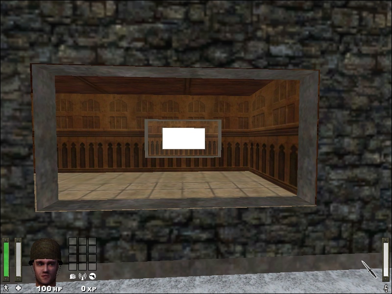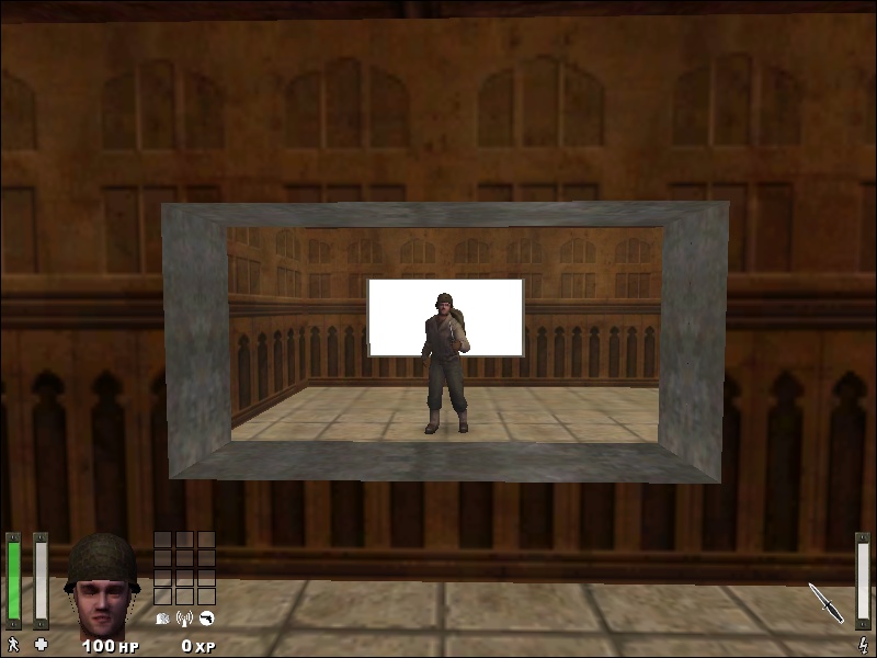 This is the entity directly in front of a random brush with a walled texture. The instructions say to set the target to a misc_portal_camera that ‘sees’ the view you want to display on the portal (target: portalcamera).