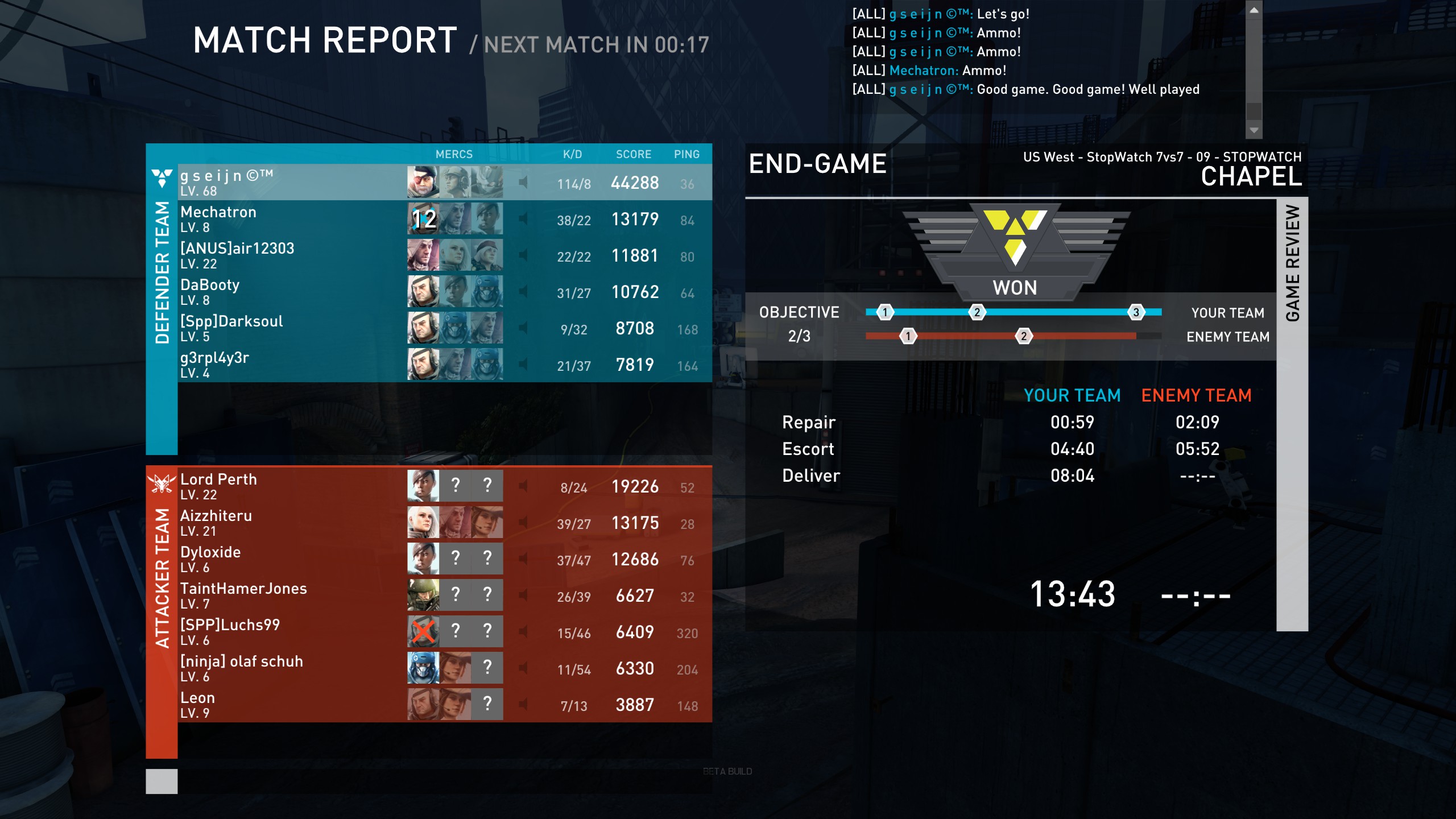 I’d find this thread more interesting if screenies were limited to min 10 servers and matches with comparable total team XP. With a few exceptions (kudos to @LifeupOmega), so far we mostly got impressive demonstrations of spawn camping skills in imbalanced matches. Which is a kind of gameplay that’s attractive to only a small amount of players and does not really help to make Dirty Bomb succeed with a wider audience.