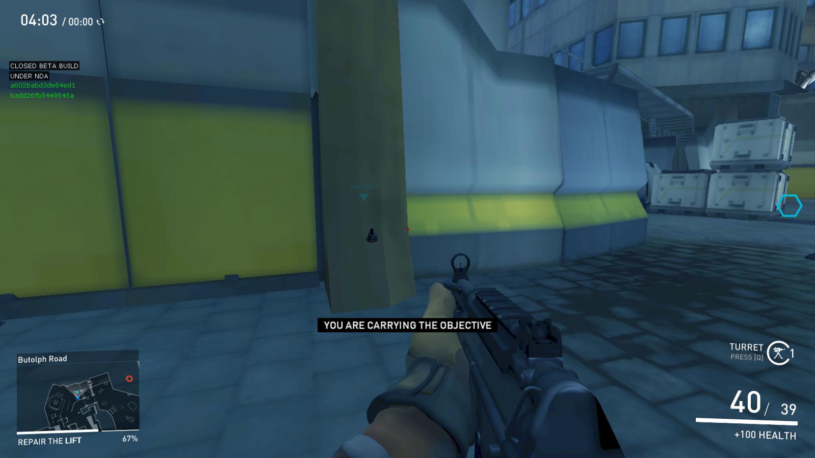With the walljump it is now possible to jump up the crates with the tubes in it. Behind this crate you can walk inside the wall: