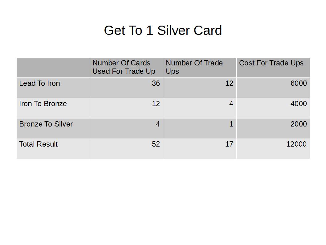 Traded total of 3456 cards of type SILVER: amount of trade-ups: 864