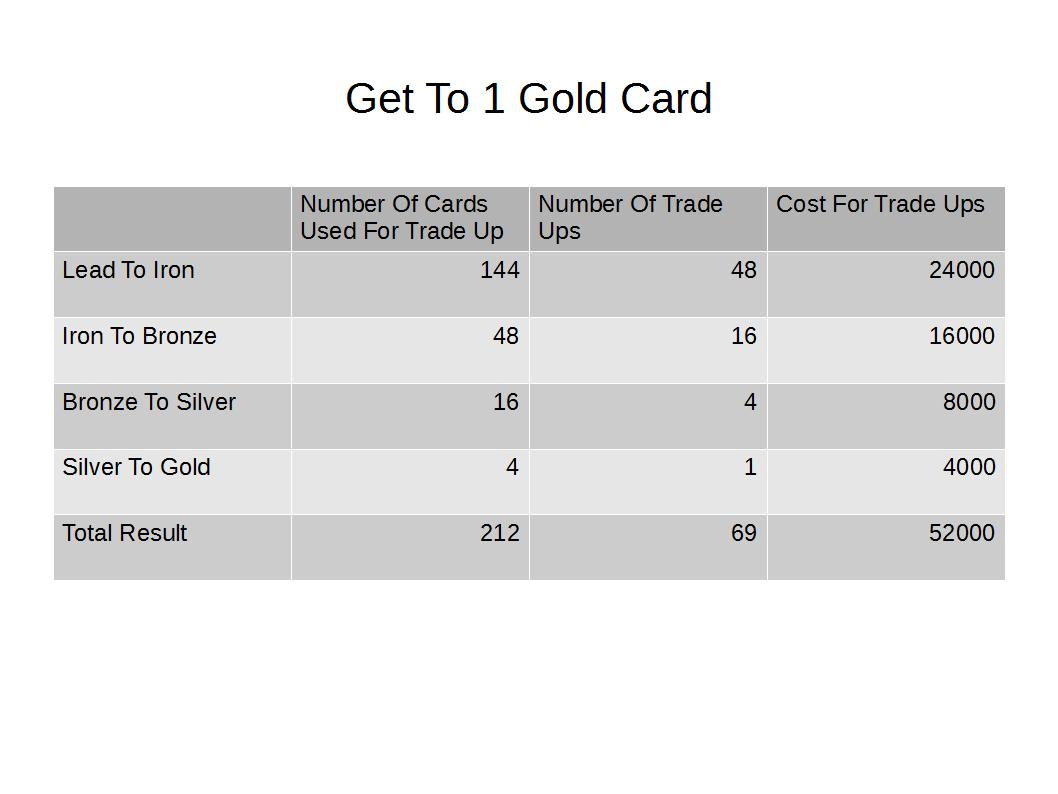 Traded total of 864 cards of type GOLD: amount of trade-ups: 144