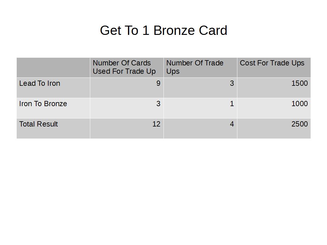 Traded total of 13824 cards of type BRONZE: amount of trade-ups: 3456