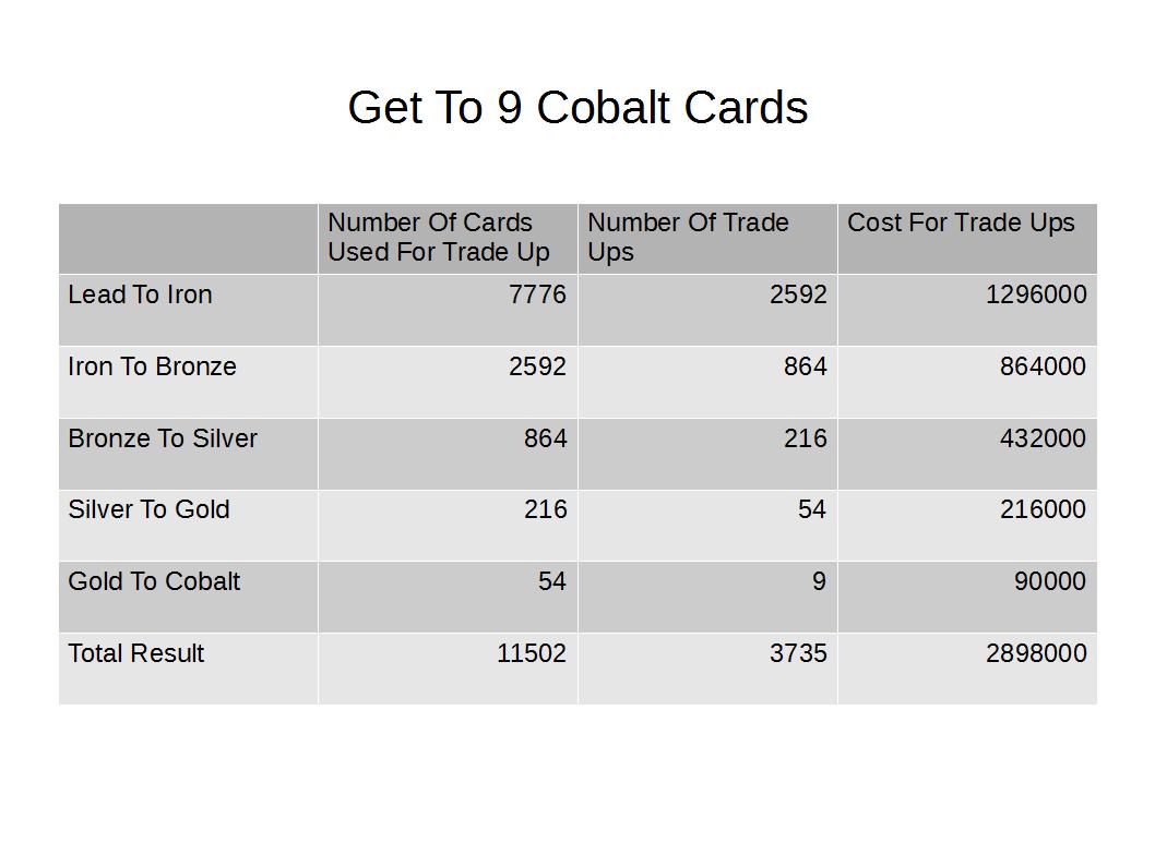 - how much trade-up money do i need to get to a cobalt card