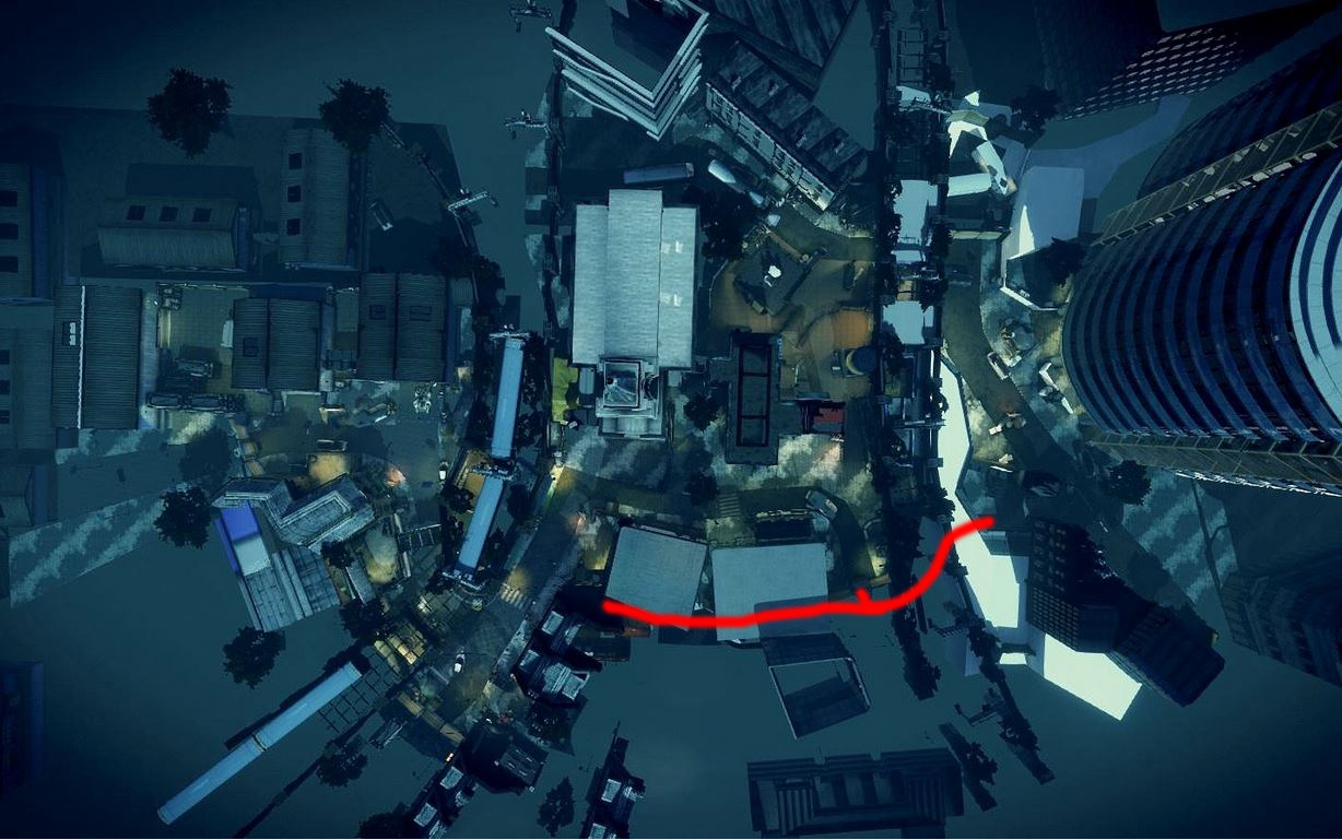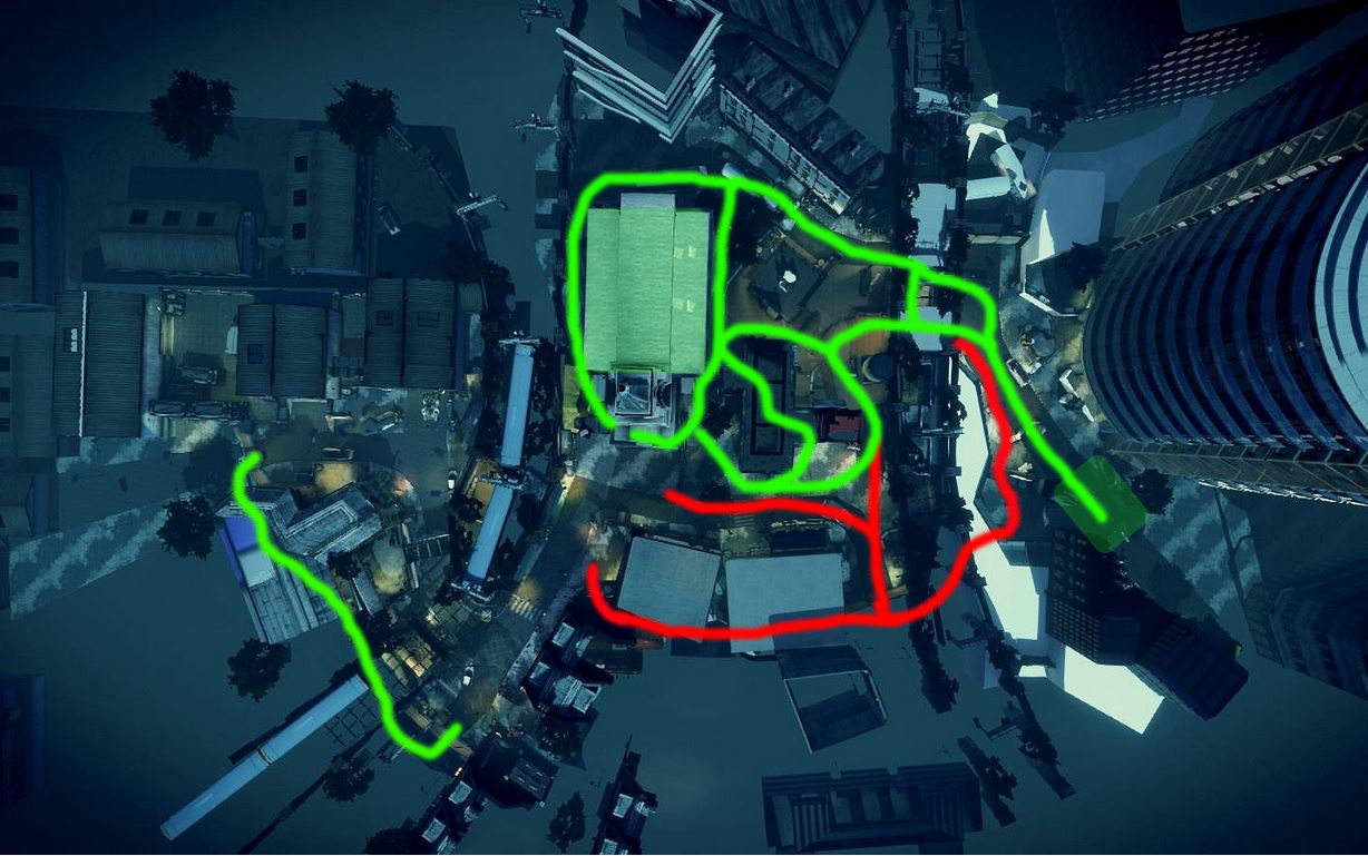 1st Route: A flanking route for first phase attackers. This will help take some focus off the EV, allowing for an easier/quicker build and stop everyone from funneling into the same area.