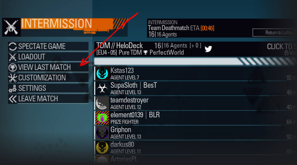 In lobby there should be an option to see last match stats/result