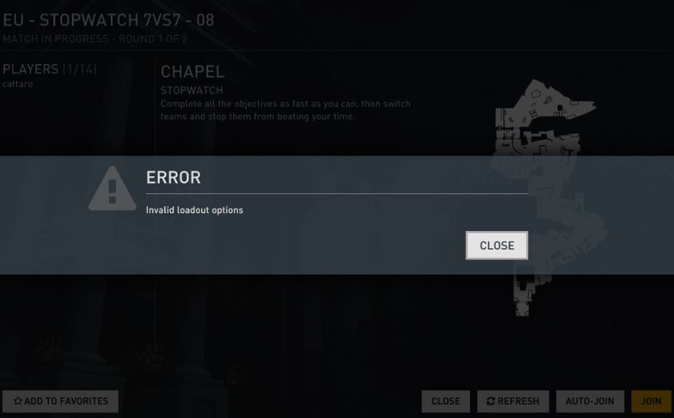 Happened on [6v6 Stopwatch EU - 08], I joined from the server browser.