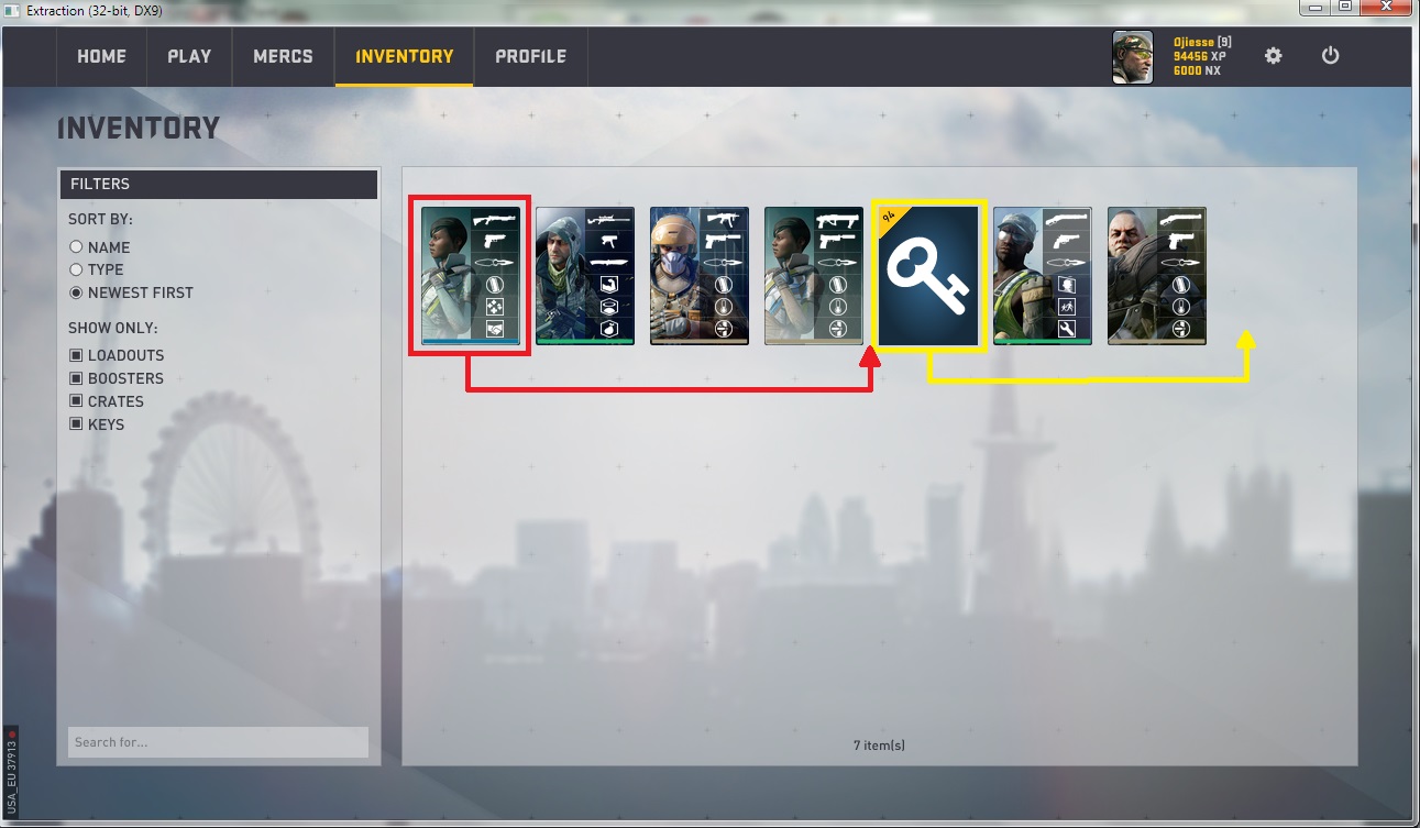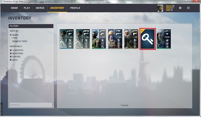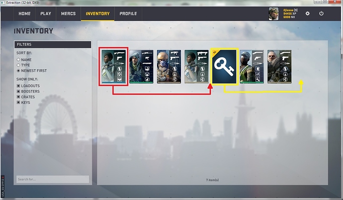 Personally I’d like to see different items types not be mixed except maybe when sorting by “Newest”. If I sort by name, that will be because I want to see things arrange by merc, please don’t throw keys and crates in there, sort these separately at the end or on a separate line. That would make the “Type” sort redundant, but perhaps it could be replaced by a “Rarity” option that would order the items from the rarest to the most common (again, only merc items unless rarity also applies to crate variations, etc…).