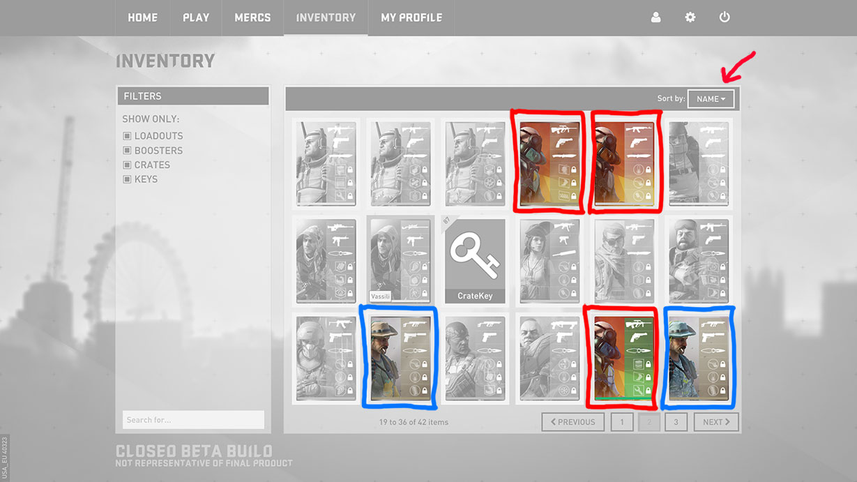 You can see in the screenshot some loadouts for the same merc aren’t next to each other, as it would be expected.