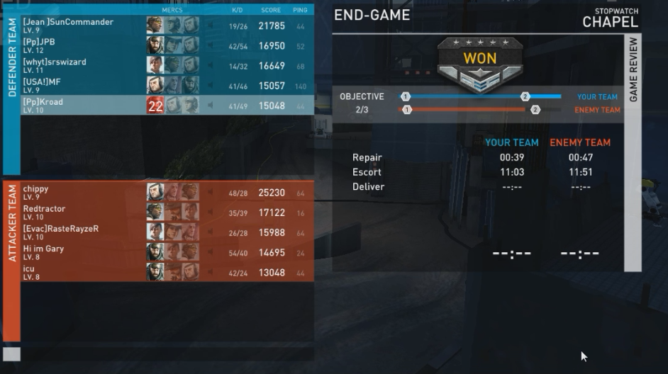 I think it’s fair to say neither team played optimally, I know our team messed up a lot and with more coordinated effort we could break the defense faster but the point still stands that if the EV is destroyed right next to the final parking spot it’s significantly harder for the attackers to repair than any other location in the map.
