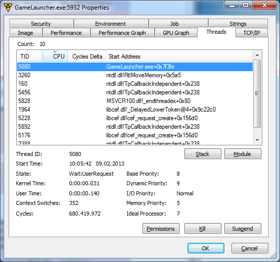 10:38:44,7789983,"GameLauncher.exe","5356","Thread Create","","SUCCESS","Thread ID: 5964"