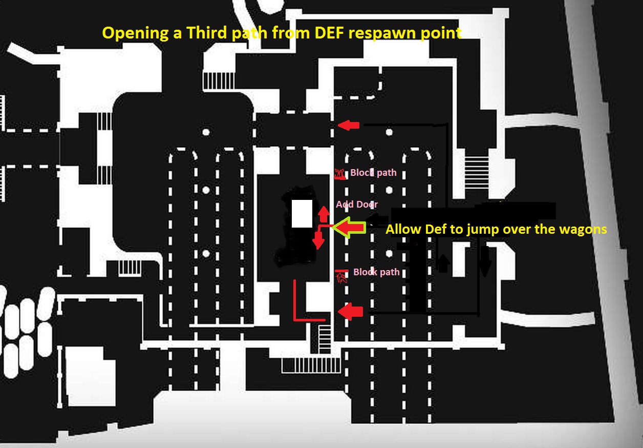 Don’t forget that defence used to have a secondary route to the balcony from their spawn, but that proved to be too much of an advantage so they closed it off.