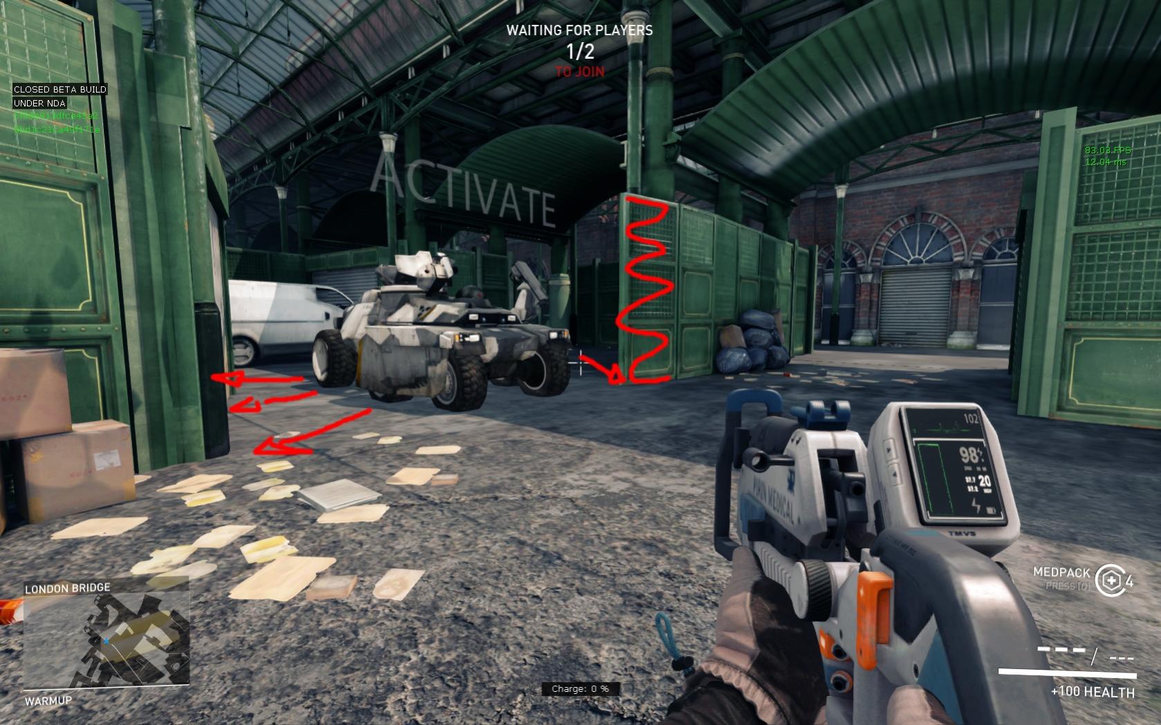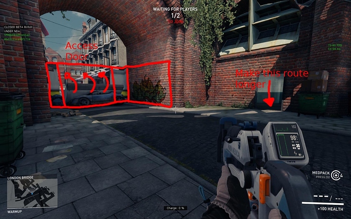 I’ve been thinking about the first stage of London Bridge where you have to repair the EV and I see currently a big problem : the defense masses up at the EV location and can easily control the first stage. Lets add a side objective that will force a few players of the defense to leave the EV location and that provides a tactical advantage for the offense.