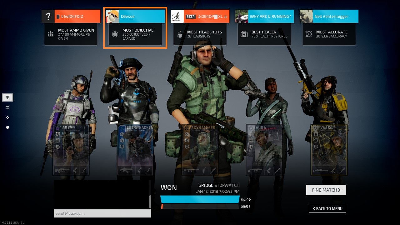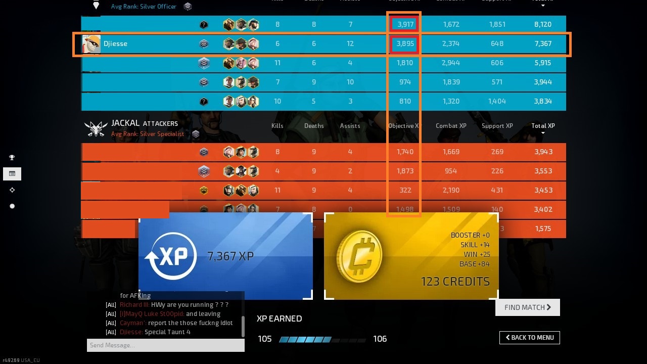 I don’t usually cross-check awards with the scoreboard, but in this case it was so obviously wrong considering we had won, which means everybody on our team got a 500 Obj XP bonus at the end of the match…