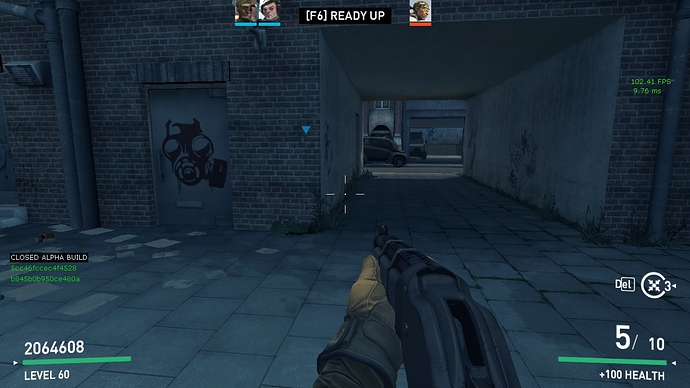 The highlights in the first pic are the same as those seen when firing the gun (muzzle flash reflections), but when the gun comes out they are ON by default and stay stuck ON until the gun is fired. I assume they disappear at that point because the firing animation cycles that texture ON then OFF.