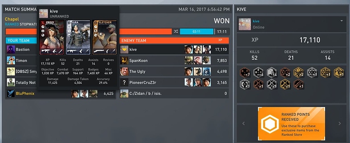 Suspecting aimbot of somekind. Tried to report but … was not able to click him in the score menu. All of the others yes (except me of course) but when I clicked on him nothing happened, no menu no nothing.
