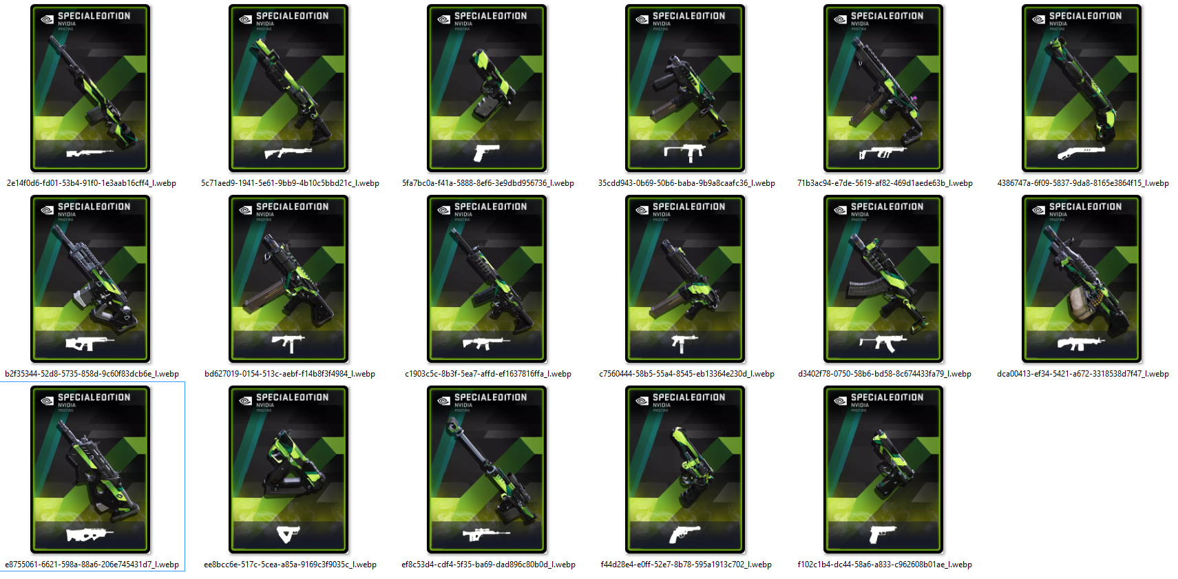 As some of you may know, the Nvidia Weapon Cards were found in the game files. Decided to dig them all up and show them in case anyone is interested.