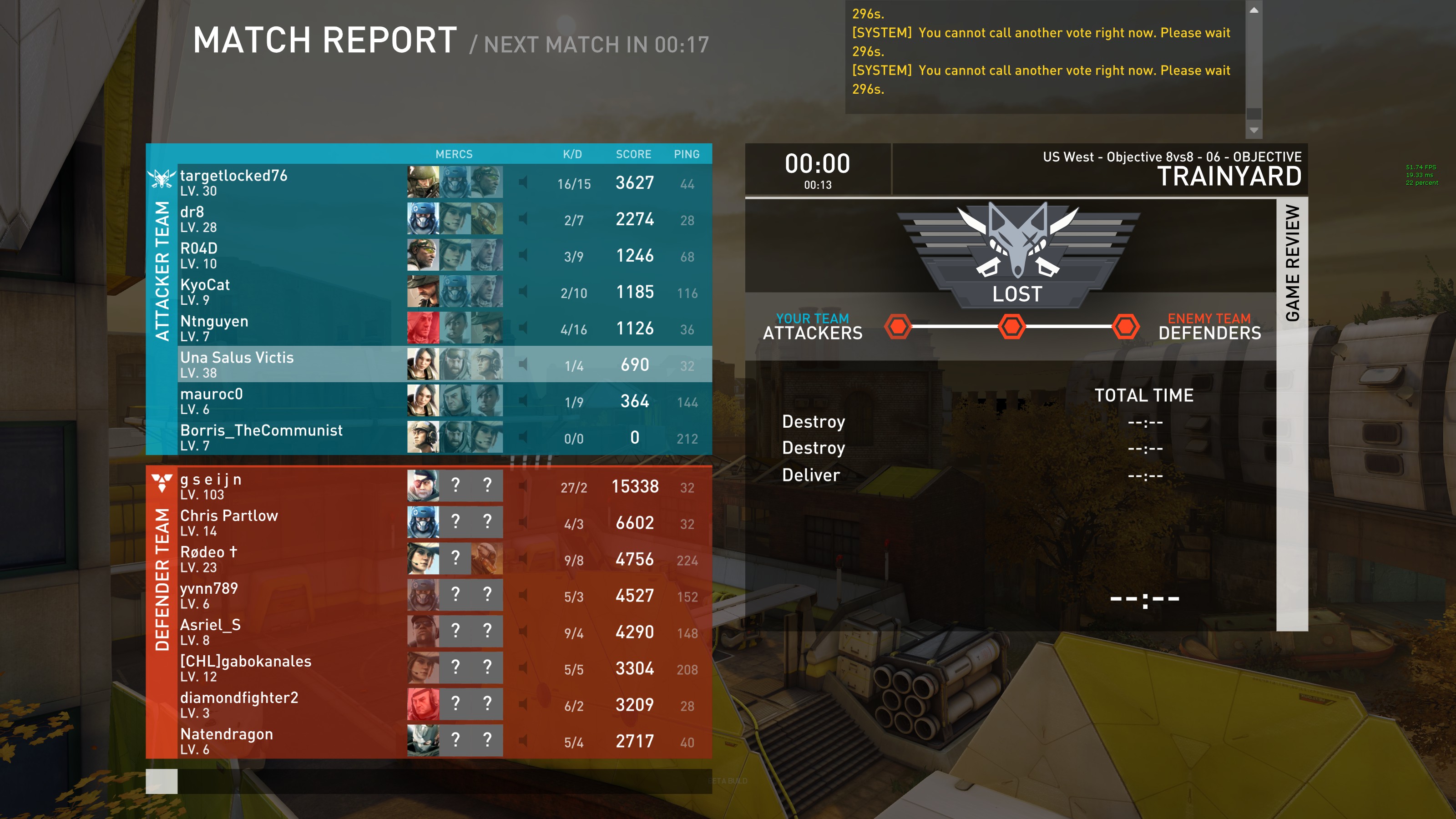 this guy kept telling everybody to “get rekt” and laughing because his hack still blocks vote kick(and lets him play as he does it) somehow it changes the person being kicked to the person who tries to start the kickvote.