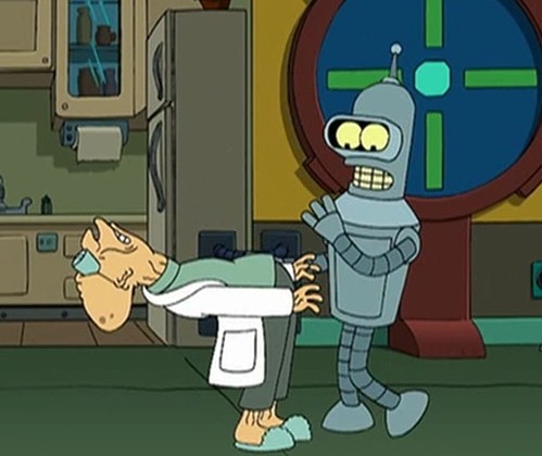 As the camera kept spinning slowly we saw he had the torso on top of the container and the legs out to the side.