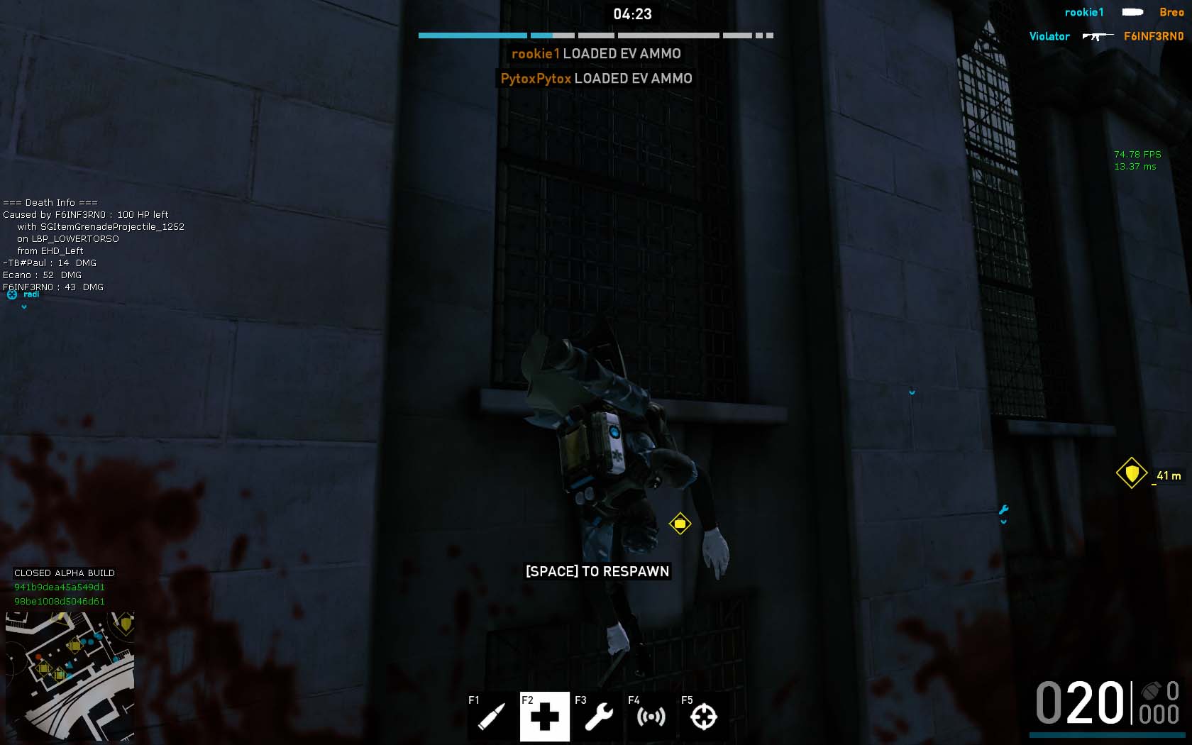 A nade made me fly thru a window on Chapel 2nd floor where I got stuck