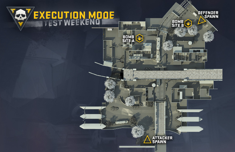 Execution Mode is played out over 12 rounds, first to win seven wins the match. In each round, the Attacking team is tasked with planting and defending C4 at one of two bomb sites, while the defenders must stop them from doing so, be it through defusing planted C4, or just killing anyone that tries to plant a bomb.