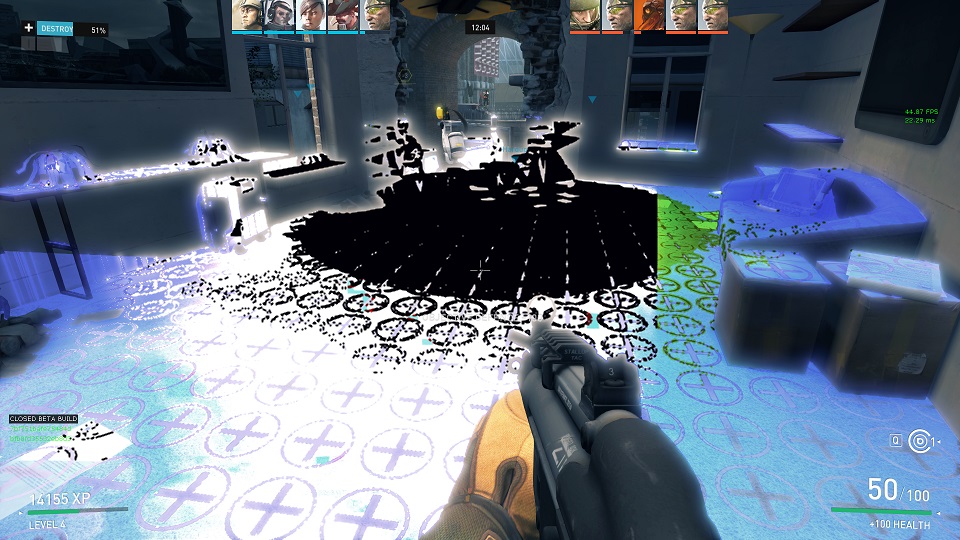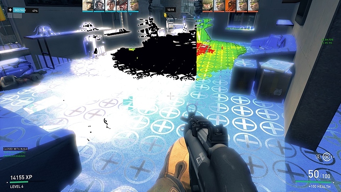 I had some weird psychedelic colors coming from a health station on LB today. The colors would cycle thru from red, to yellow, to blue, green and black.